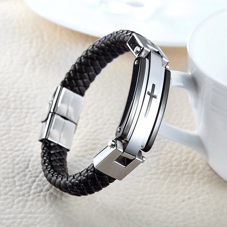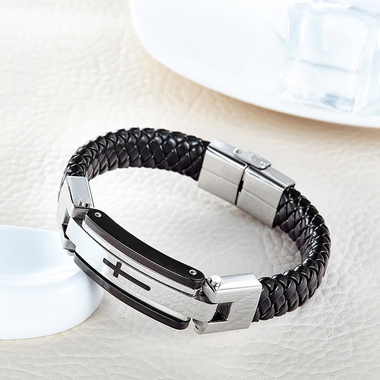 Introducere » BIJUTERII BARBATI INOX » Bratara Barbati Solida Piele -PREMIUM- Inox Cu negru1934X