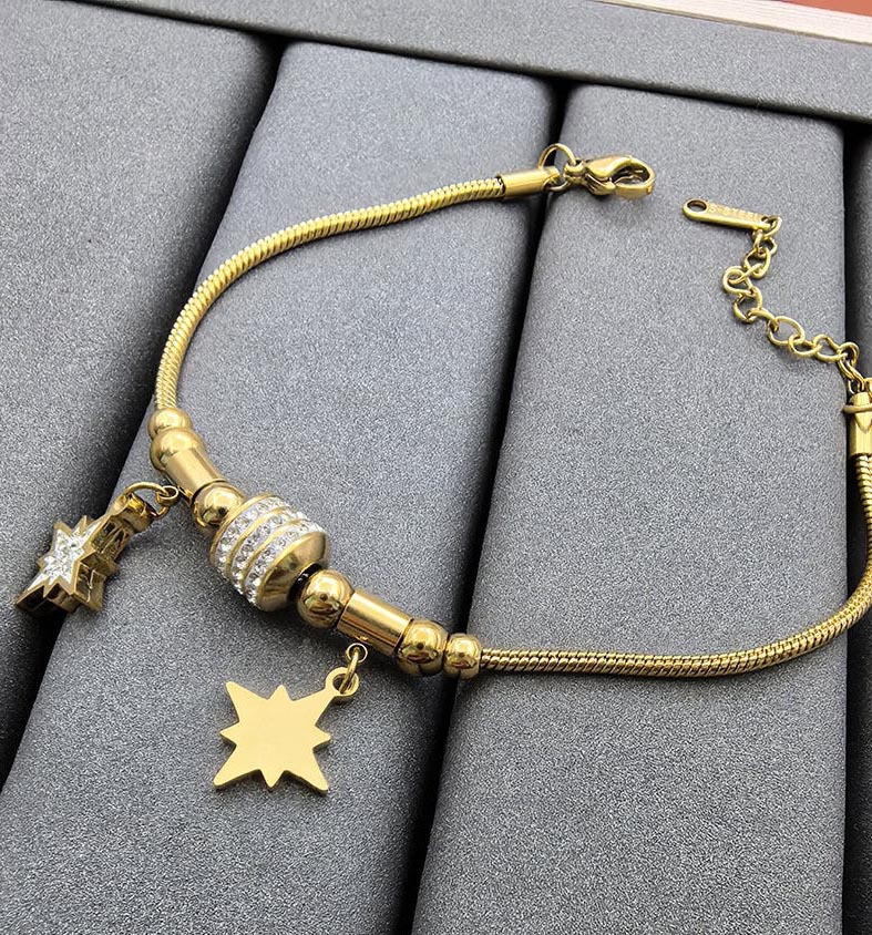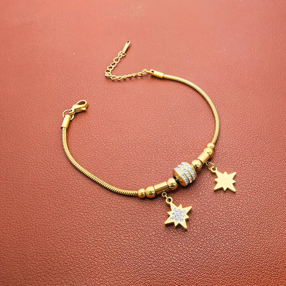 Introducere » BIJUTERII FEMEI INOX » Bratara Femei Placata Aur 18K Cu Charmuri Stele Stralucitoare, Stil Glamour, Reglabila 1963FD