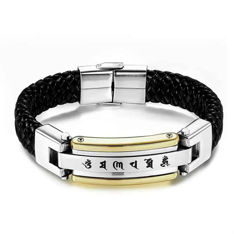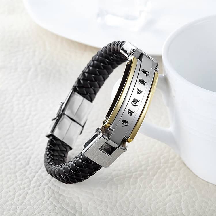 Introducere » BIJUTERII BARBATI INOX » Bratara Solida Piele -CHINESE LETTERS- Inox Arurie 1956