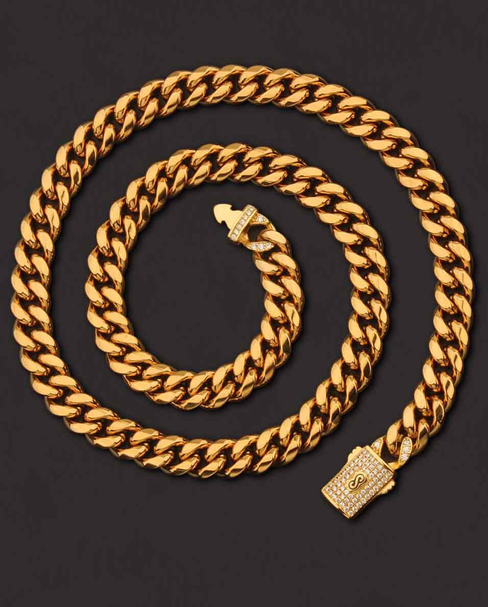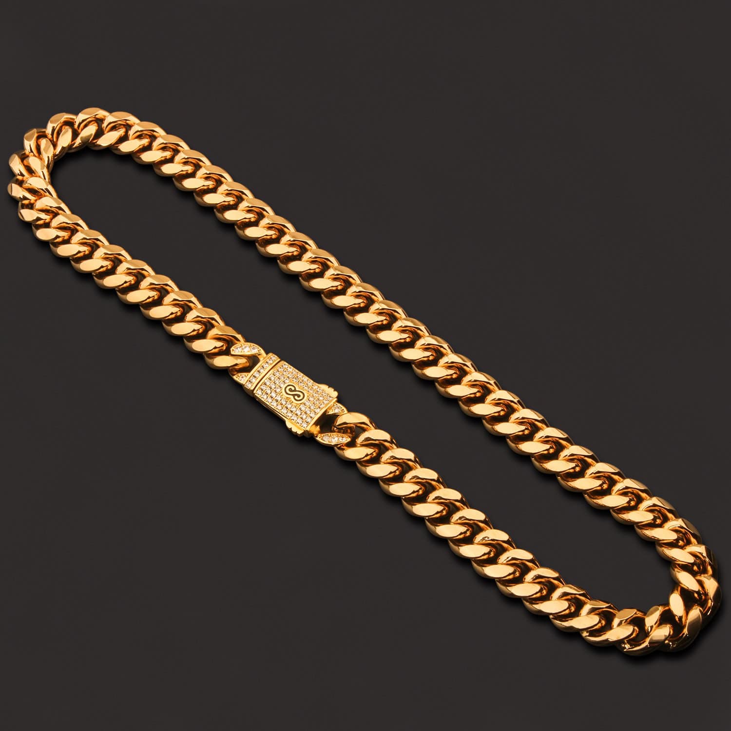 Introducere » BIJUTERII BARBATI INOX » Lanț Masiv Bărbați Tip Cuban, Auriu cu Închidere cu Pietre, Bijuterie Statement Streetwear, Stil Rap / Trap 1123XA